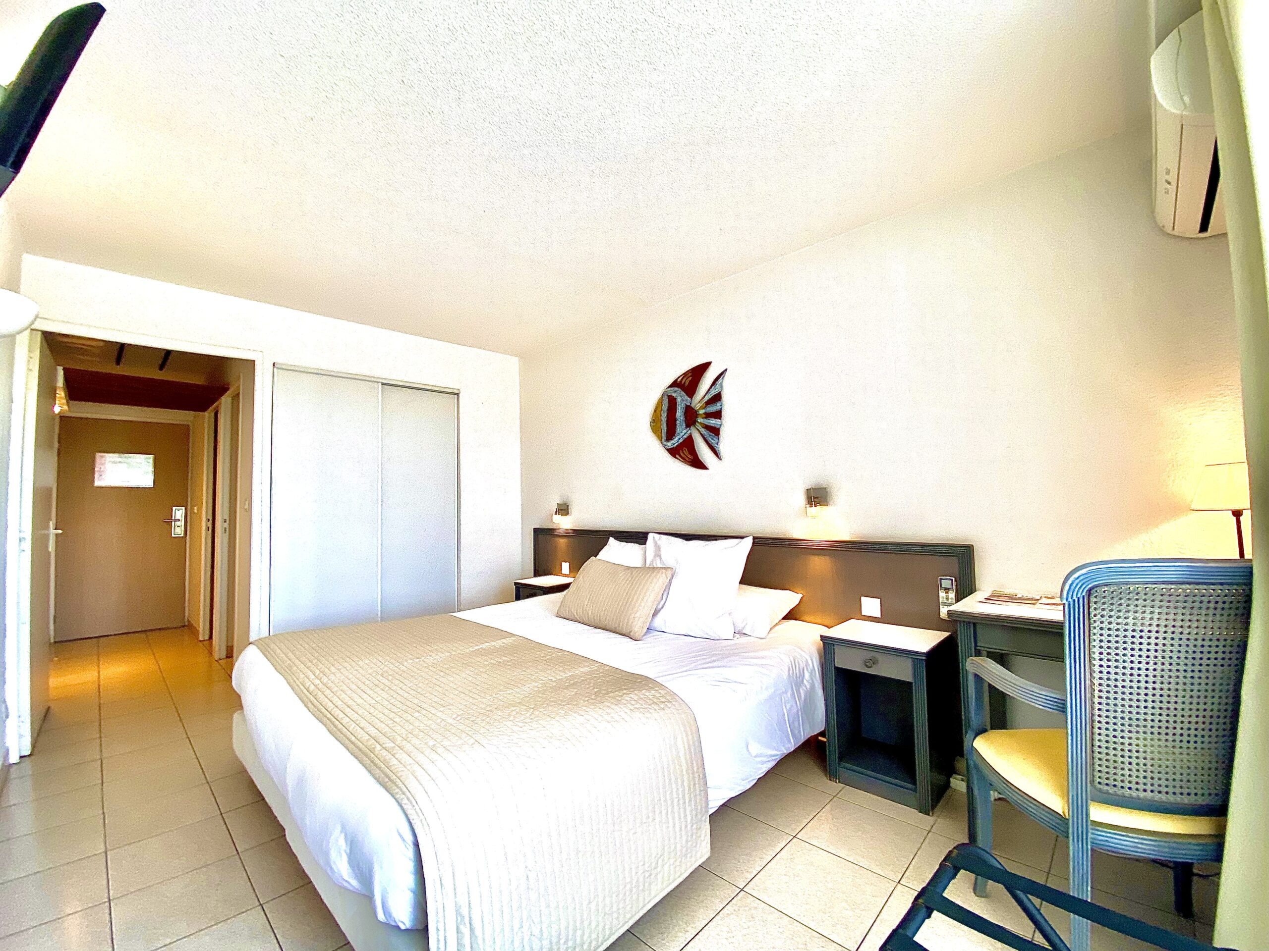 Parfaites pour un séjour prolongé, nos chambres supérieures disposent d’un lit king-size, mini-frigo et d’une salle de bain avec douche à l’italienne. Situées au 2ème étage du bâtiment, la vue sur la mer est immédiate depuis votre lit ou votre terrasse.